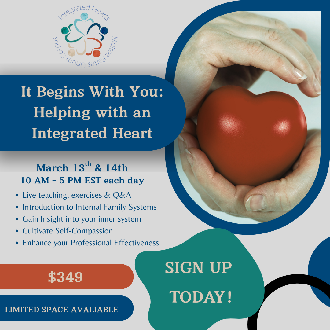 "Integrated Hearts serves as a conduit for Catholic helping professionals as they integrate the wisdom of Internal Family Systems (IFS) with the beauty of a Catholic Christian worldview. Our didactic and experiential approach bridges head knowledge with heart knowledge alongside foundational truths to support helping professionals as they accompany others on their journey to flourishing."